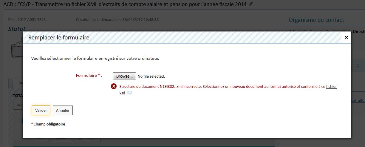 Structure du document nomFichier.xml incorrecte. Sélectionnez un nouveau document au format autorisé et conforme à ce fichier xsd.